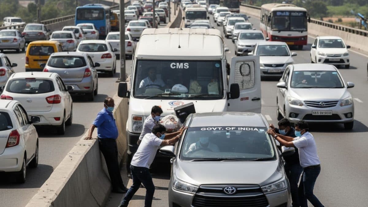 7 मिनट से भी कम समय में, इनोवा 7.11 करोड़ रुपये और डीवीआर के साथ नियमित यातायात में वापस आ गई थी, जिसे ऑपरेशन के हर सेकंड को कैप्चर करना चाहिए था। (छवि: एआई जनित)
